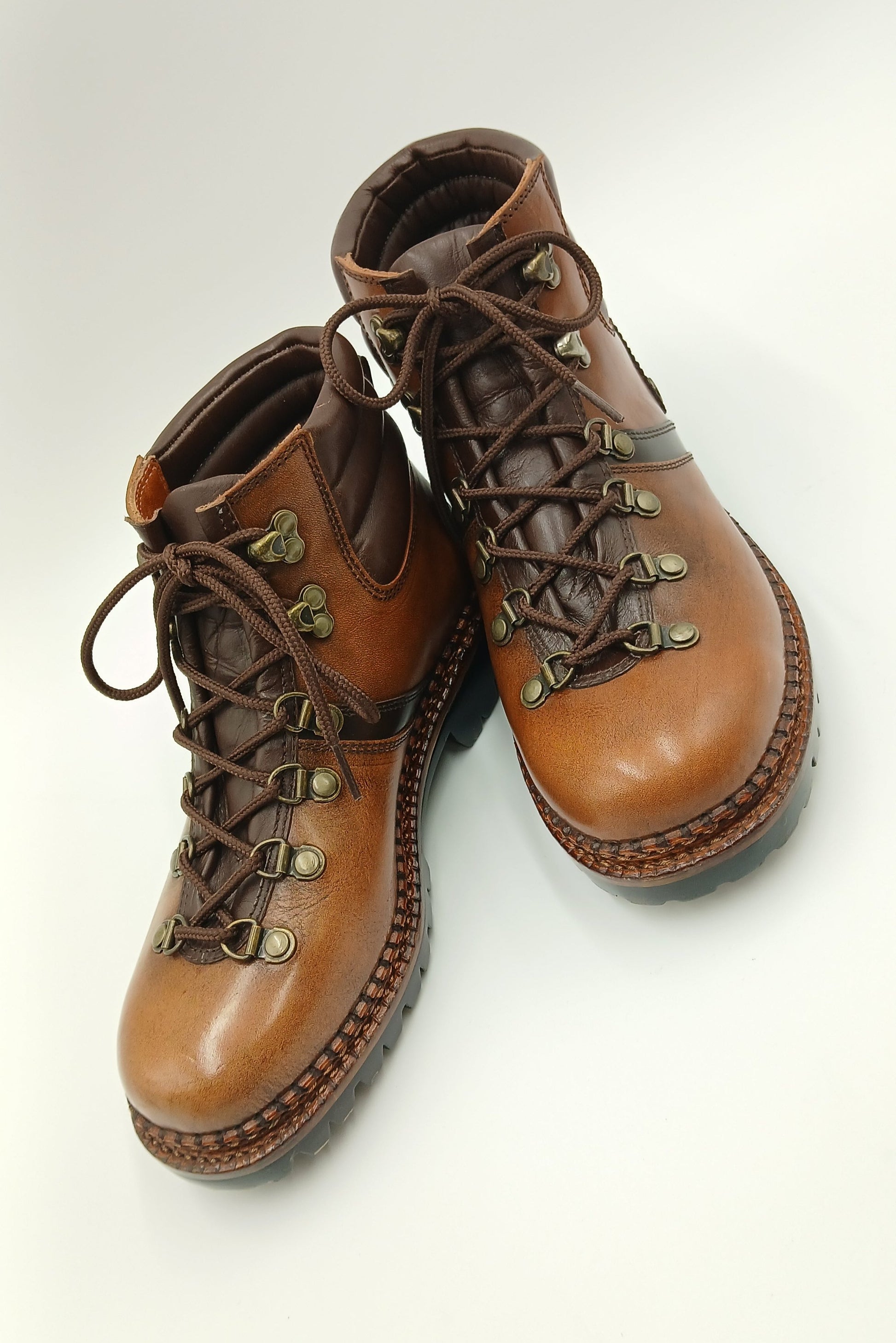 Embark on your adventures with the Everest Heritage, a masterfully crafted hiking boot that seamlessly combines style and practicality. Featuring hand-selected full-grain cowhide leather, this boot is designed for durability, comfort, and timeless elegance. Its two-tone brown finish showcases a natural patina that deepens over time, adding character to every step.