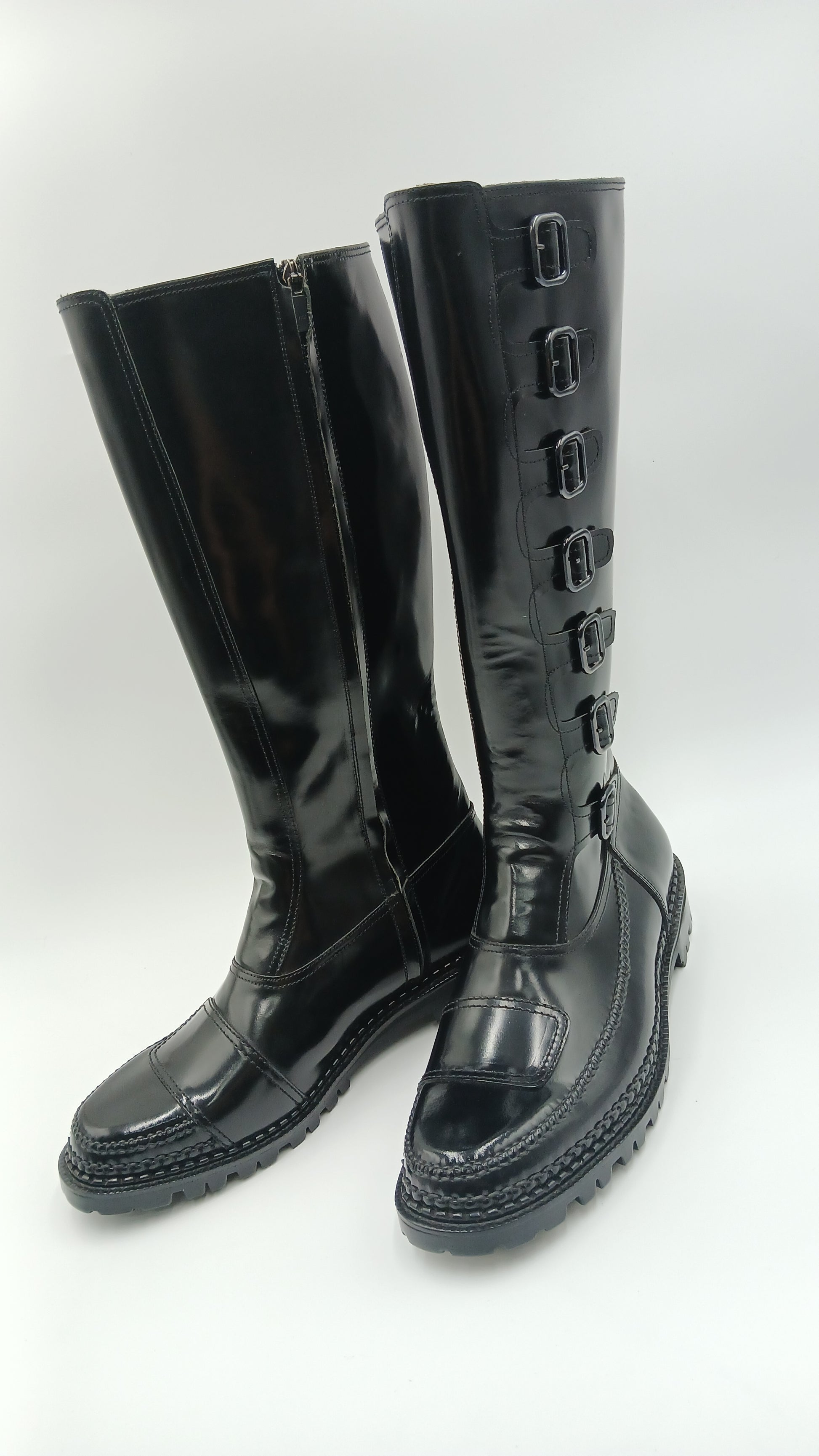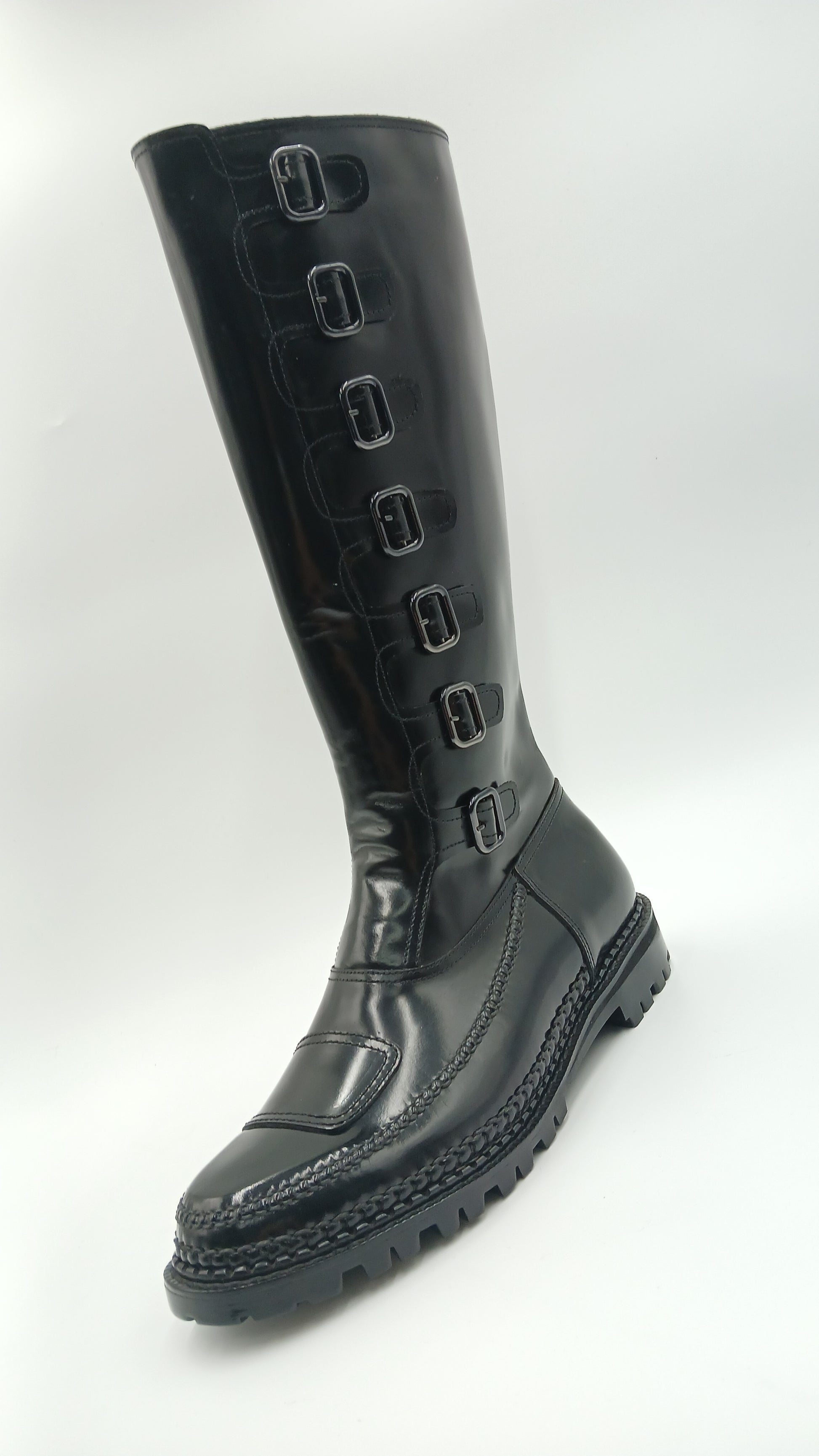 Step into a bold statement of elegance and strength with the Imperial Vanguard, a premium tall boot inspired by timeless military aesthetics. Crafted from full-grain black cow leather, these boots combine functional durability with refined luxury. Featuring an array of side buckles for a secure fit and intricate hand-stitching that showcases artisanal craftsmanship, the Imperial Vanguard exudes confidence and sophistication. The sturdy, treaded sole offers excellent traction, ensuring you’re ready to tackle any terrain in style. Perfect for formal or outdoor adventures, these boots are designed for those who command presence wherever they go.
