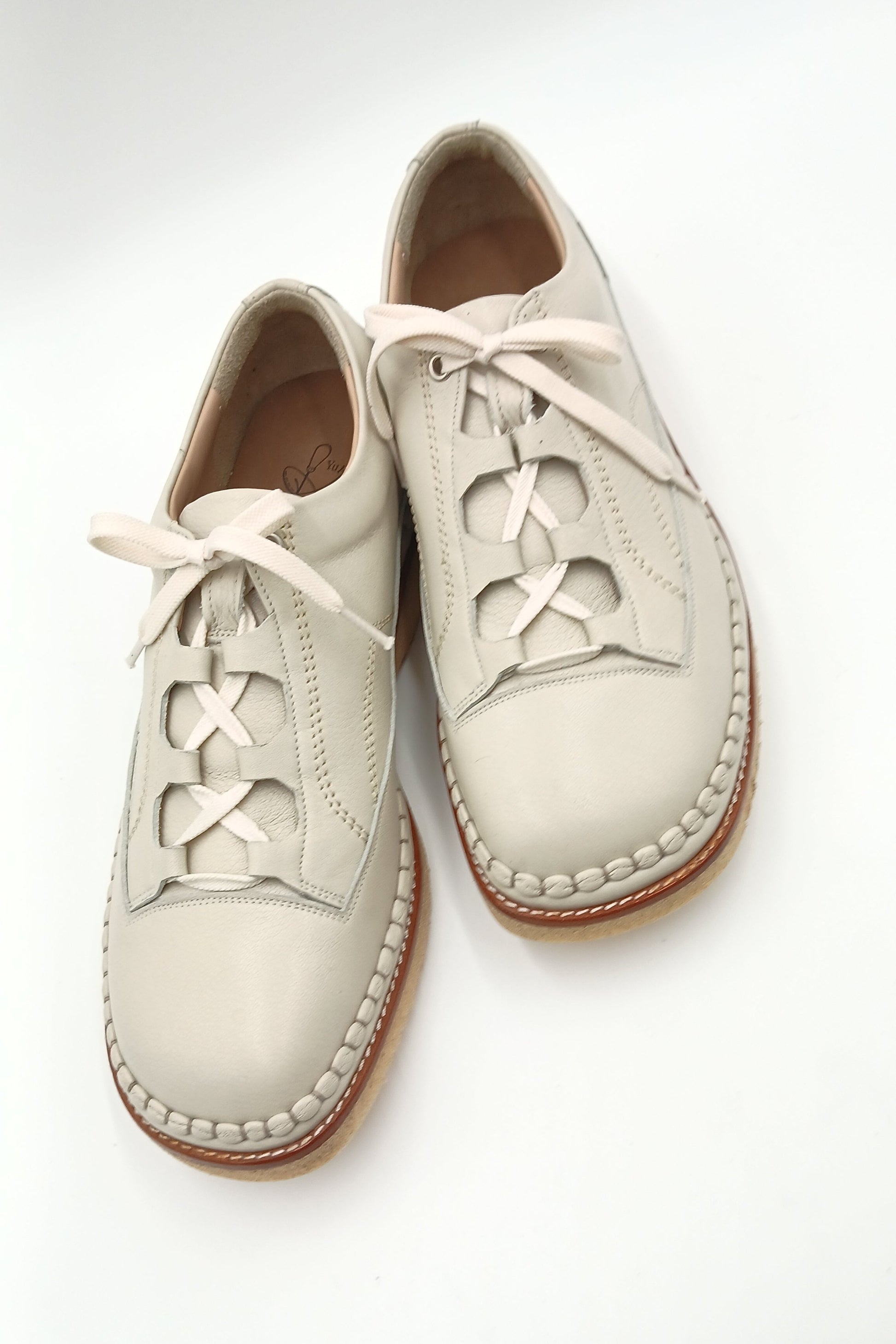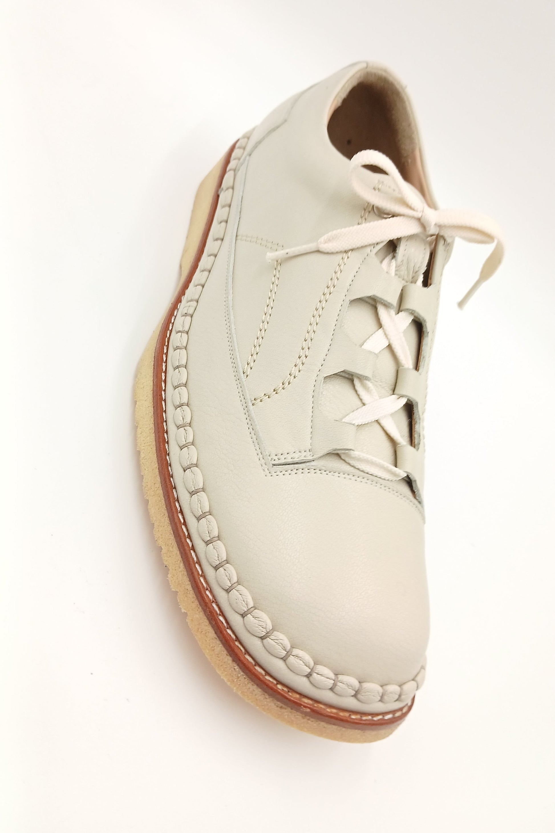 The Ecru Horizon Walkers combine minimalist elegance with artisanal detail, featuring a unique lattice-style lace design and hand-stitched craftsmanship. Designed for everyday luxury, these shoes offer a blend of comfort, durability, and understated sophistication.