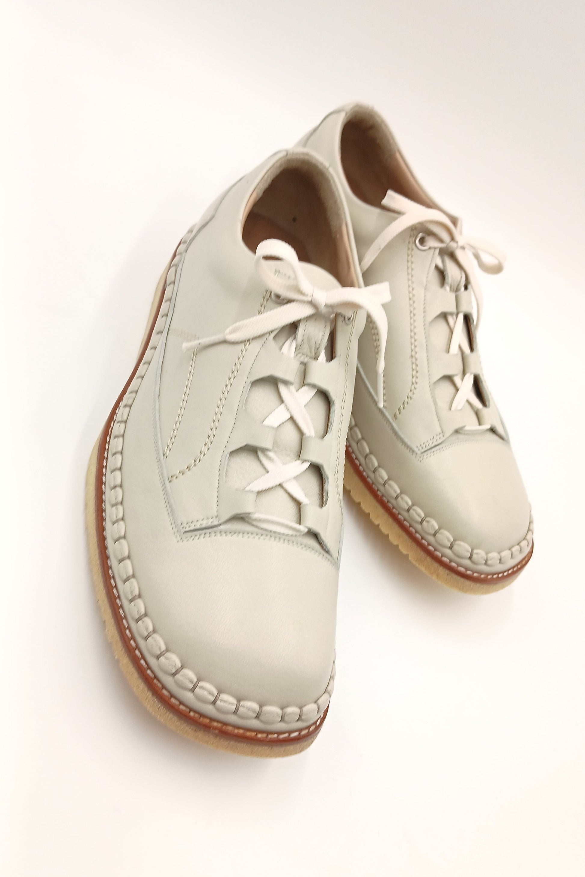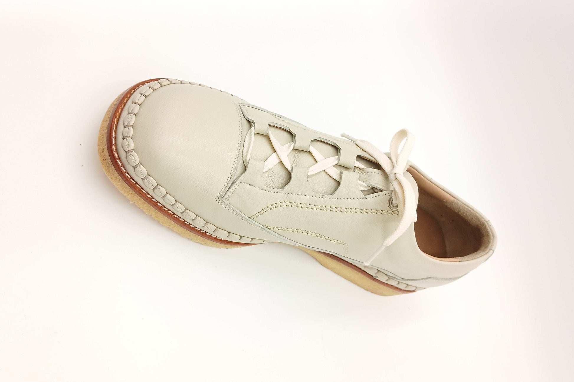 l  Upper: Soft ivory-toned premium leather with a natural grain texture.