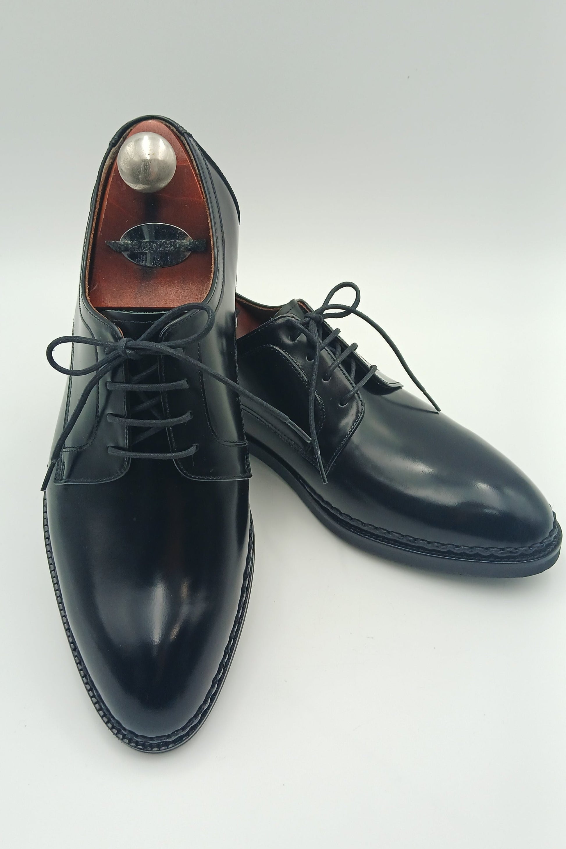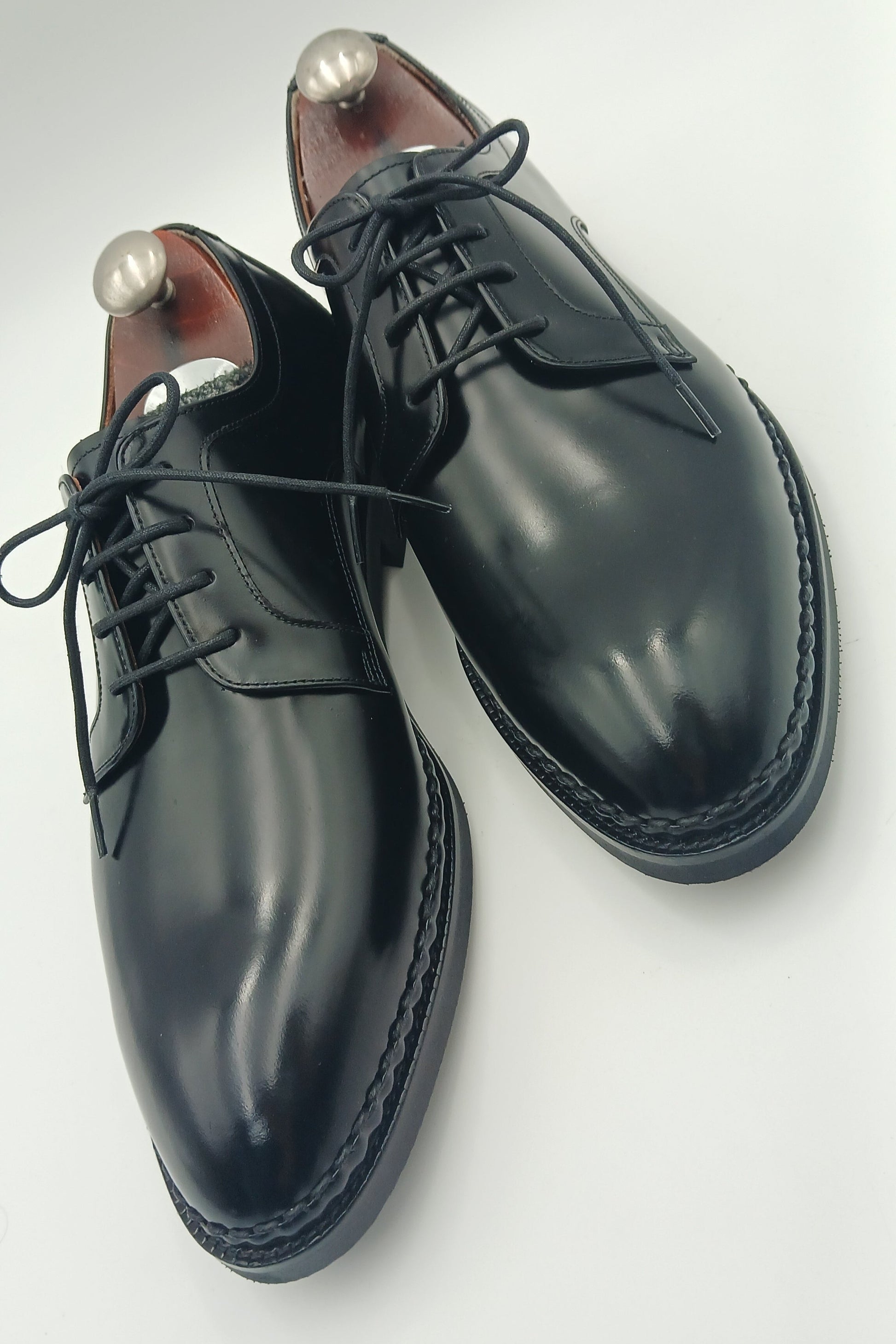 Step into timeless sophistication with the Noir Opulence, a masterfully handcrafted bespoke derby shoe that epitomizes minimalist elegance. Made from premium black full-grain calf leather, this design merges contemporary refinement with traditional craftsmanship. The sleek silhouette is enhanced by meticulously hand-stitched detailing and a polished finish that radiates understated luxury.